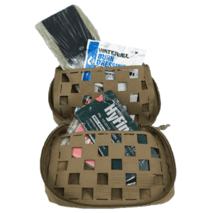 The regular size is great if you want to have a personal trauma ifak. However, the plus give you room to really breathe. I fit a 6″ israeli bandage, two chest seals, NAR occlusive dressing, two quikclot combat gauzes, an extra CAT in the multi-mode tq attachment, s fold gauze, and a 4″ ETD. I still have room to fit some extras of what I already have, burn dressings, boo boo stuff like bandaids, blister packs of nsaids and antihistamines, advanced airway management devices, decompression needles, or whatever else you’re trained to use in the field.