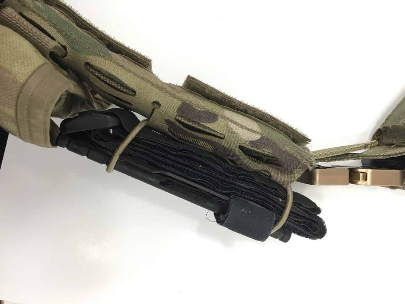 You can put these things anywhere, not just on Arbor gear. They’re kinda tight when used with a CAT tourniquet, but they can be ripped out one-handed, which is the point. Good piece of kit. Use those drain holes for something.