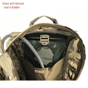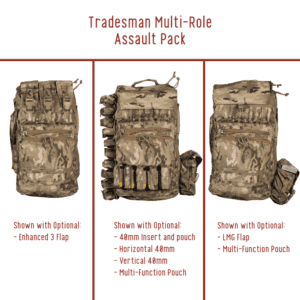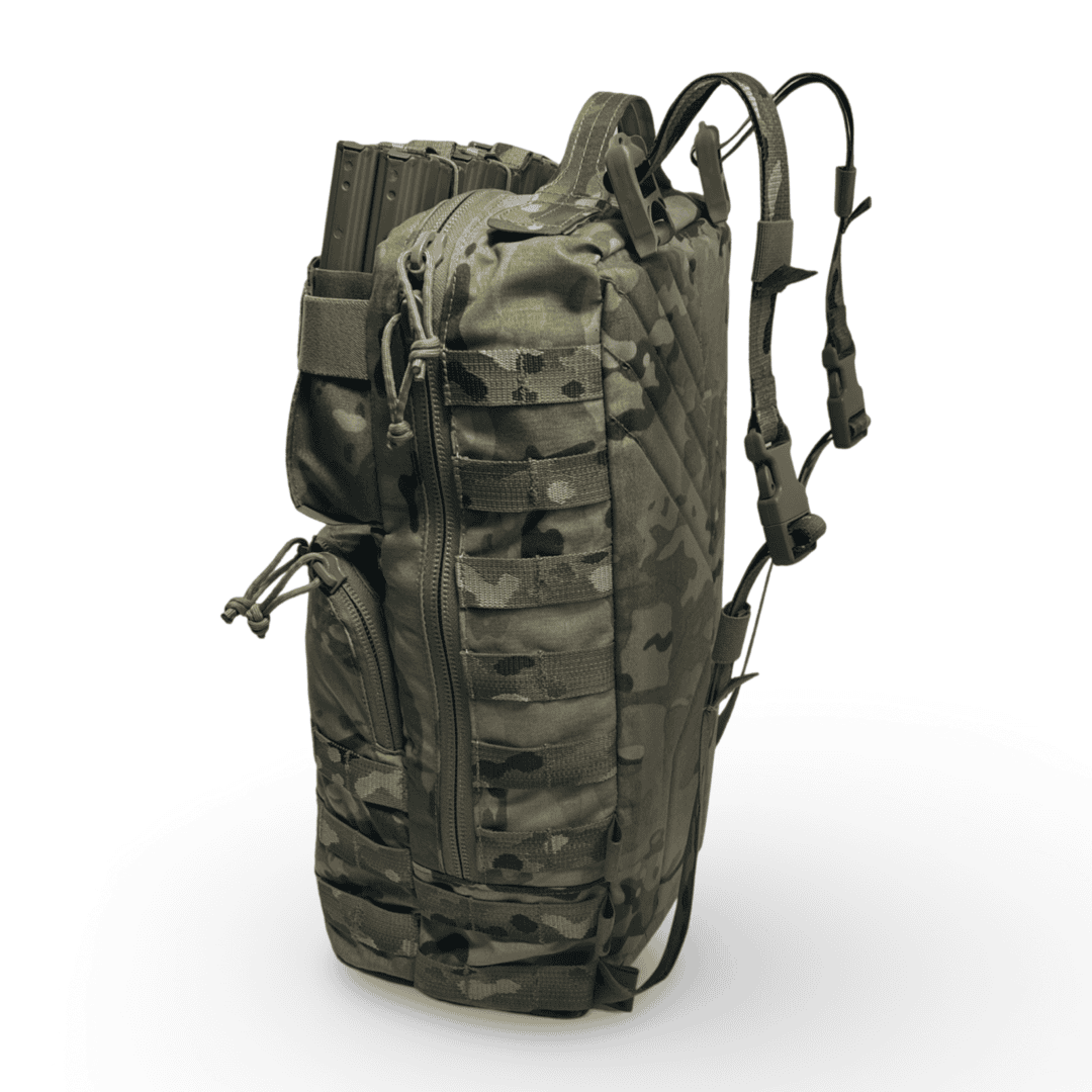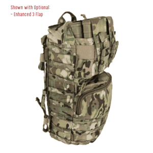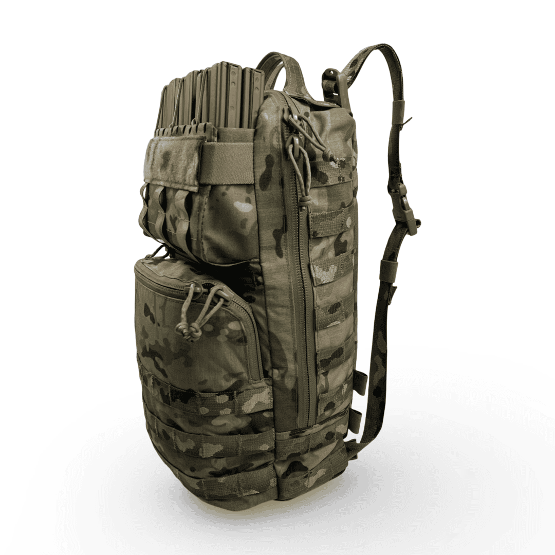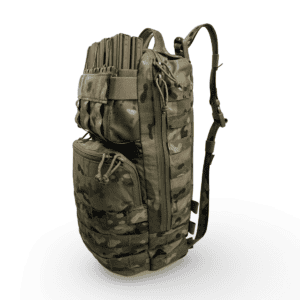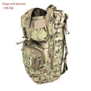 Upper Modular Compartment: The versatility of the Tradesmen Pack comes from the adaptability of the Upper Modular Compartment. In its various configurations It can accept 6×5.56 mags, 6×7.62 mags, 1×200 round SAW drum, 2×M107 mags, 3x smoke grenades, 3x 500ml IV or blood expander bags, or 10x 40mm long rounds.  Additionally, there’s a loop on both internal sides allowing you to switch from a 6 mag divider to LMG flap (with or without 6 mag divider to 40mm insert) to a 3 flap with or without 6 mag divider, or zippered GP.