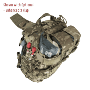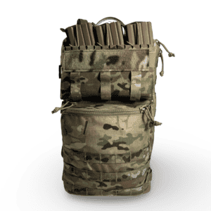 Carry: One of the key features of the Tradesmen Multi-Role Assault pack is that it’s meant to be directly connected to your armor. Directly connecting to the armor mitigates circulation loss from pack straps cutting into the armpits, stock weld problems, pistol presentation problems from reduced mobility, maritime release compromise and entanglement, excessive bulk of straps over the shoulder that occur with traditional shoulder straps.